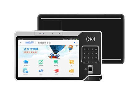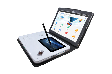 NB05B多合一移动办公智能银行终端通过蓝牙与10.1英寸平板连接。