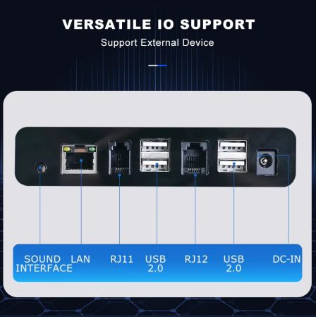 - Slot: RJ11×1,RJ12×1, RJ45×1, USB A×4, DC×1(Charging), SIM ×1(Optional), TF×1, Type-C×1(OTG)