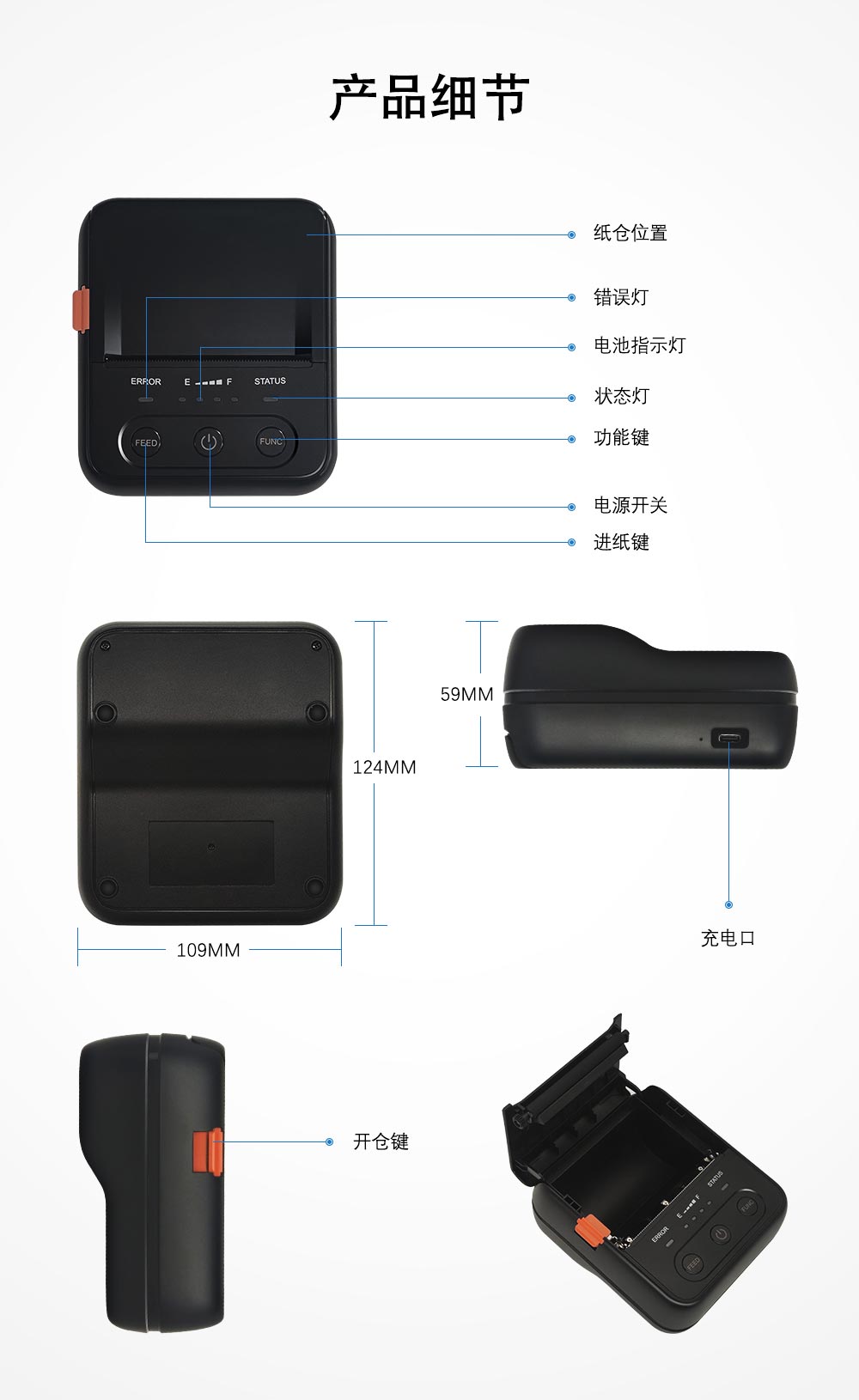 | 包装内含 | 1*用户手册,1*充电线,1*适配器,1*打印机 |