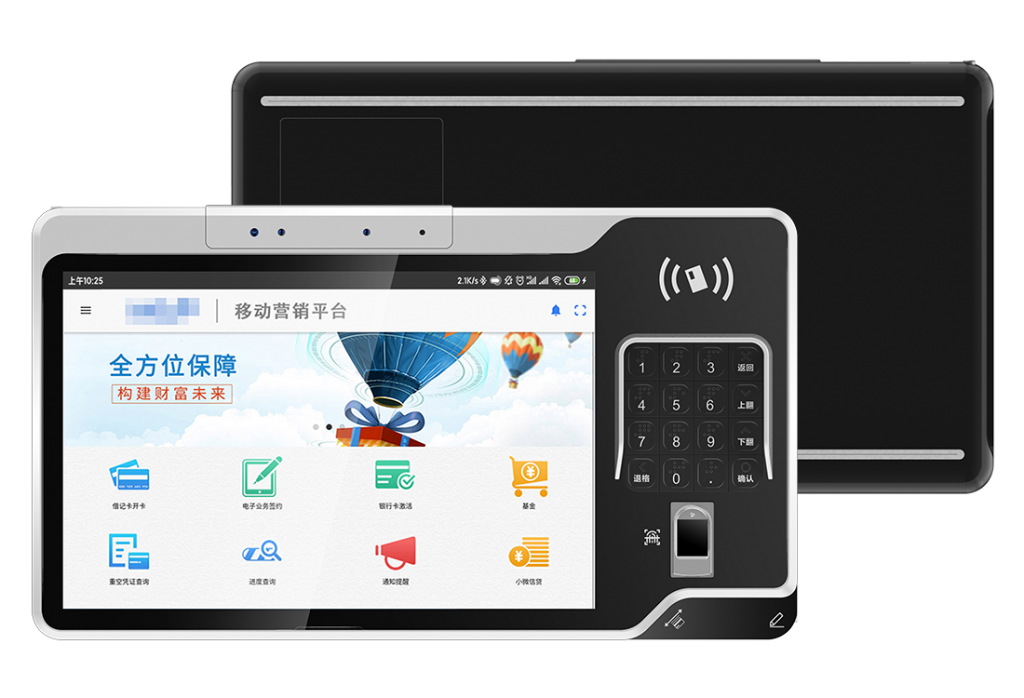 银行移动办公ODM项目。 可匹配收银、财务自助、会员管理等多元化使用场景,同时也广泛应用于保险、银行、酒店、商场、彩票等。